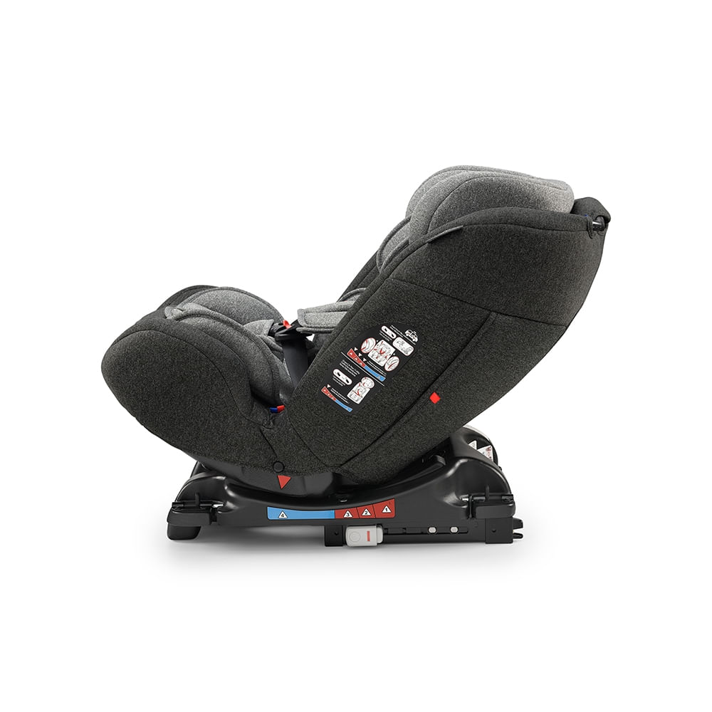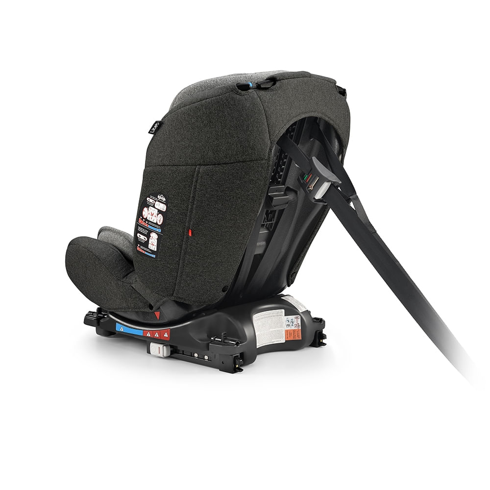 São 4 posições de recline super confortáveis, 14 posições de altura do apoio de cabeça e três alturas para ajuste do cinto de segurança.. A All Stages conta com sistema de retenção isofix com duas garras isofix na base e o top tether no topo. O isofix é reversível, sendo possível usá-lo em todos os grupos, do 0 ao III.