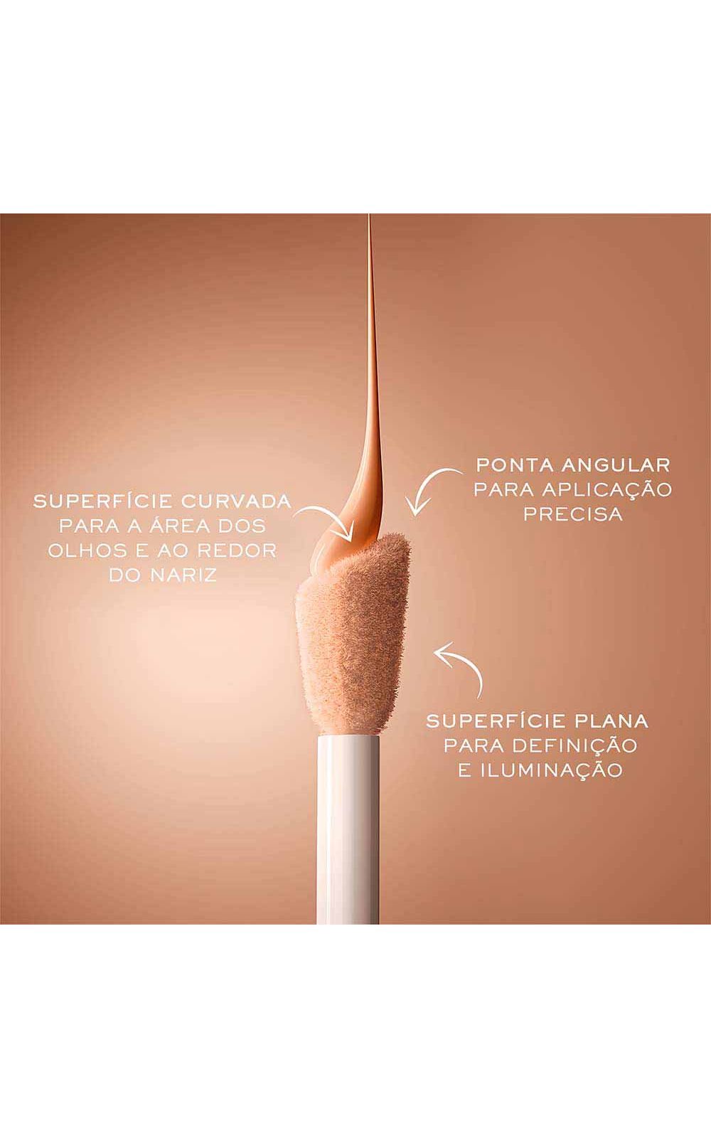 Utilize o aplicador em formato de diamante, que é curvilíneo, para uma aplicação rápida e eficiente, desfocando e escondendo áreas escuras e olheiras.