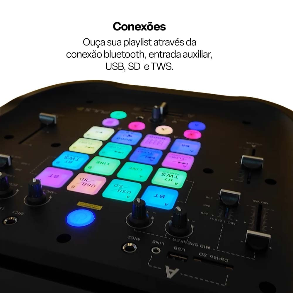 Potência para o seu som favoritoCom a Pulse Flamebox DJ você transforma qualquer ambiente em uma festa.
