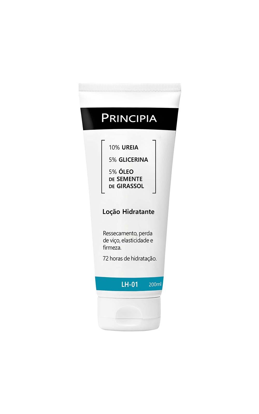 LH-01 loção hidratante, com alta concentração de Ureia, Glicerina e Óleo de Semente de Girassol. Contém 10% de Ureia que possui alta eficácia hidratante, 5% de Glicerina composto orgânico hidrofílico umectante e 5% de Óleo de Semente de Girassol que possui propriedades emolientes e antioxidantes.