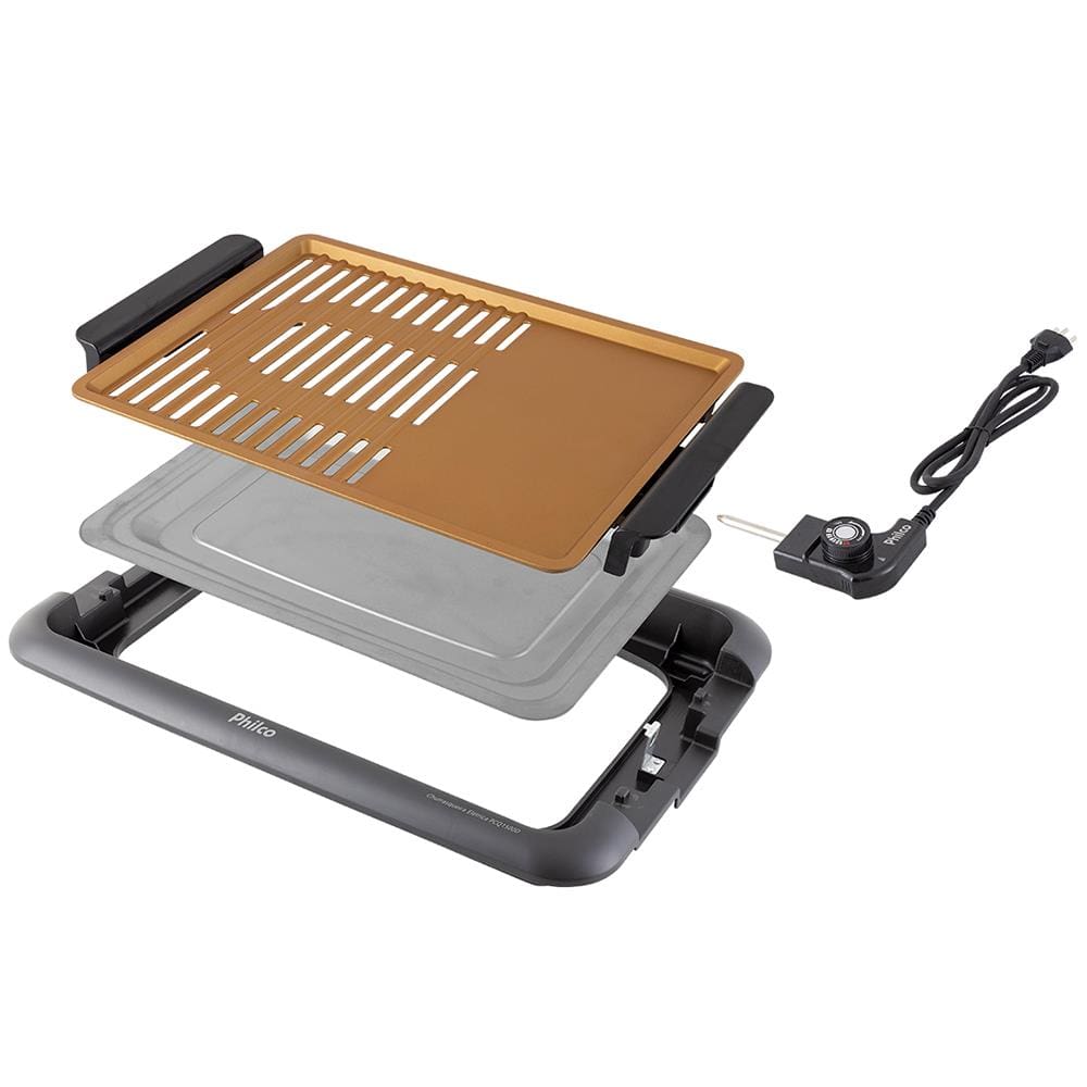 Churrasqueira Elétrica Philco PCQ1500D com Revestimento Antiaderente e 1500W - Dourado/Preto